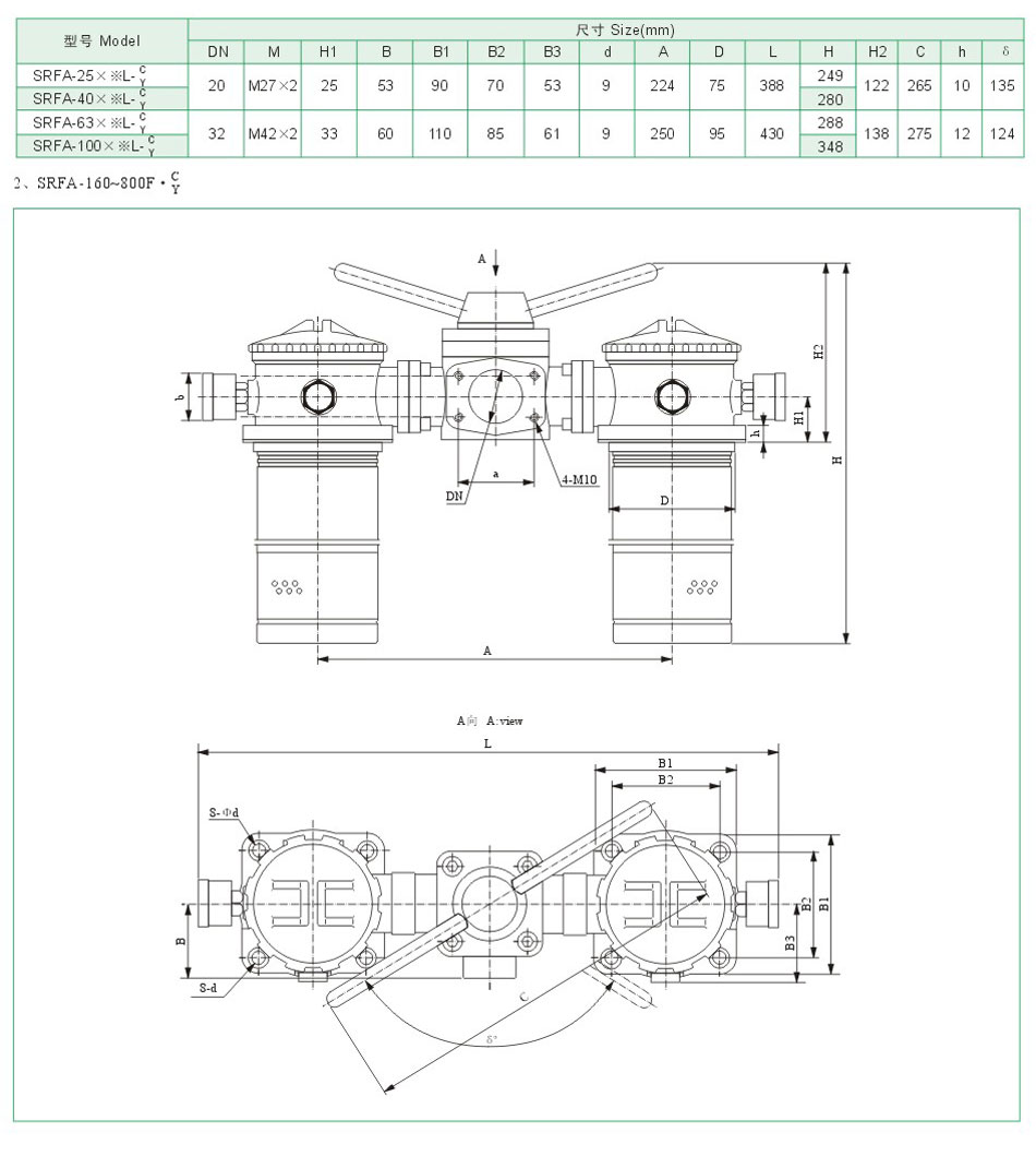 SRFA系列回油過濾器是有兩只單筒過濾器,換向閥,旁通閥,擴(kuò)散器等組成,它被安裝在油箱的頂部,可在系SRFA雙筒微型直回式回油過濾器被安裝在油箱的頂部,可在系統(tǒng)不停機(jī)的情況下更換濾芯,適用于連續(xù)工作的液壓系統(tǒng)回油精過濾,用來濾除液壓系統(tǒng)中諸元件磨損產(chǎn)生的金屬粉末以及密封件的橡膠雜質(zhì),使流回油箱的油液保持清潔,以利于系統(tǒng)中的油液循環(huán)。